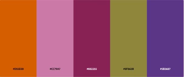 Source [ “#D55E00”, “#CC79A7”, “#882255”, “#8F863B”, “#5B3687” ]