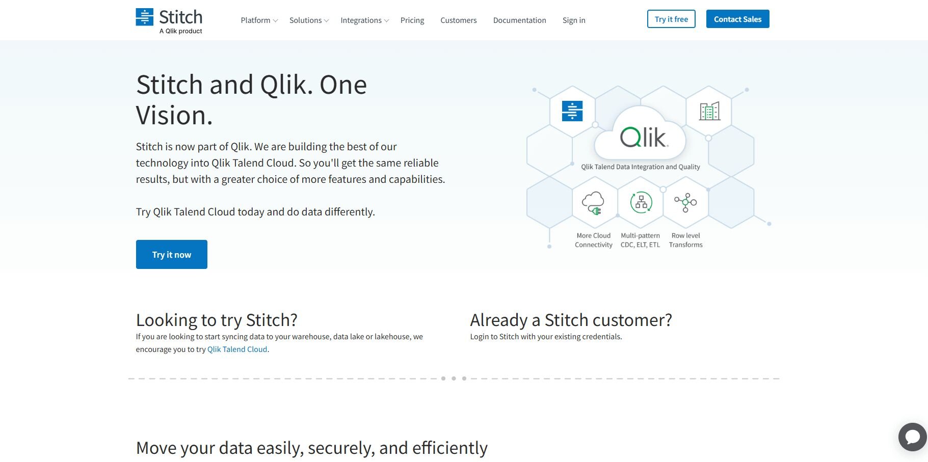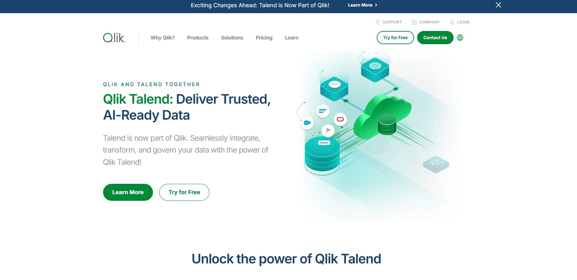 • What it does: Qlik Talend is an enterprise data integration platform that handles extraction, transformation, and loading across databases, cloud services, and applications. It includes visual workflow design, data quality tools, and governance features for teams managing complex data environments.