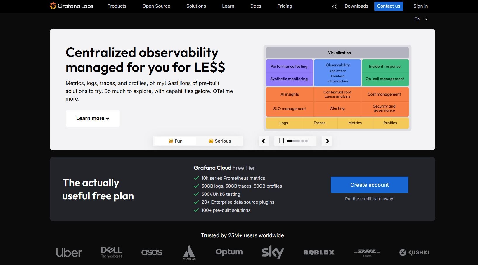 What it does: Grafana tracks metrics and system health in real time. It connects to APIs, databases, and cloud infrastructure for live reporting.