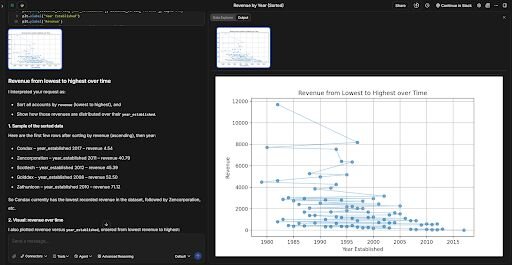 In the screenshot below, I asked for a chart with the prompt, “Show me revenue from lowest to highest over time.”