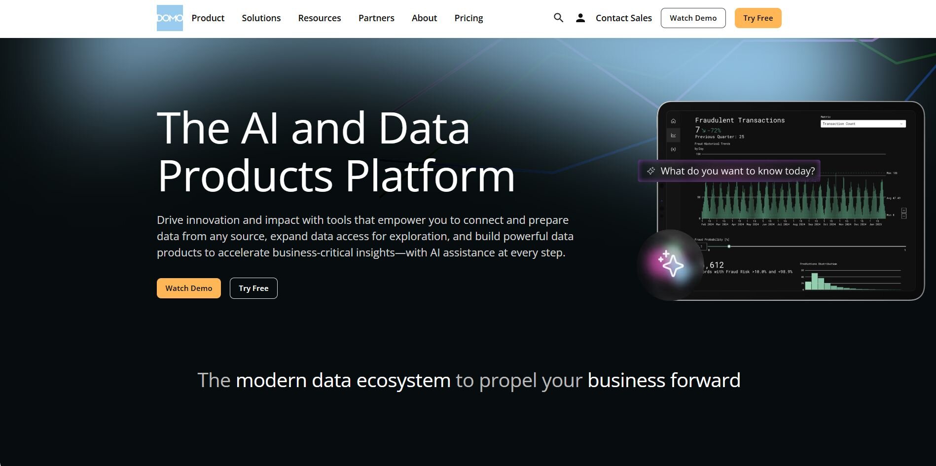 Domo is a cloud-based business intelligence platform that unifies data from hundreds of connectors, APIs, on-premises databases, and file uploads into interactive dashboards. It brings company data together so teams can make decisions quickly without jumping between tools.