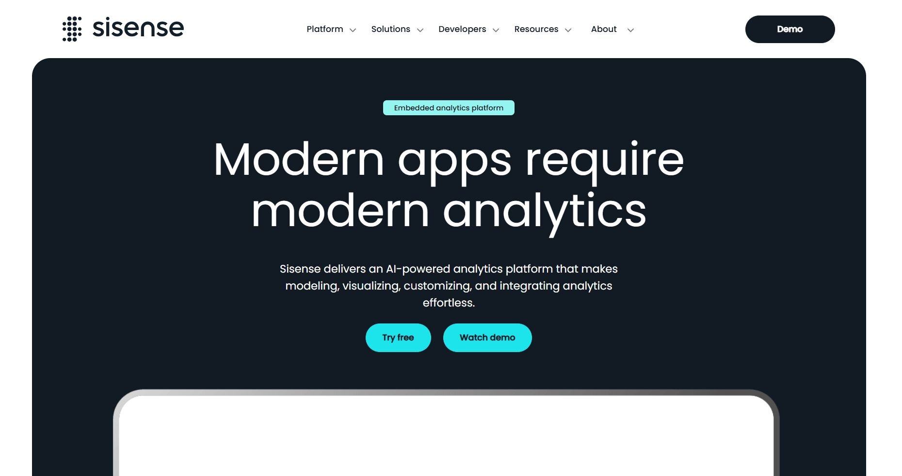 What it does: Sisense embeds analytics into internal tools and dashboards. You can build models, design widgets, and connect large data sources. The platform supports custom applications through APIs.