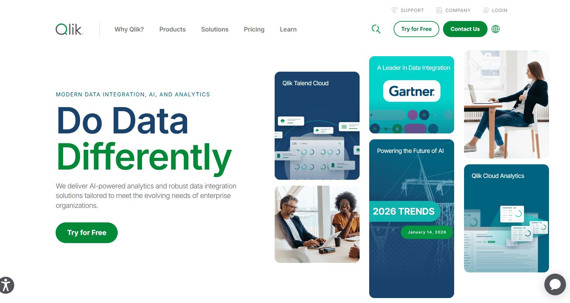 What it does: Qlik loads data from multiple sources and shapes it into analysis-ready models. You can build dashboards, link large tables, and run comparisons across fields. The associative engine lets you explore data without predefined pathways.