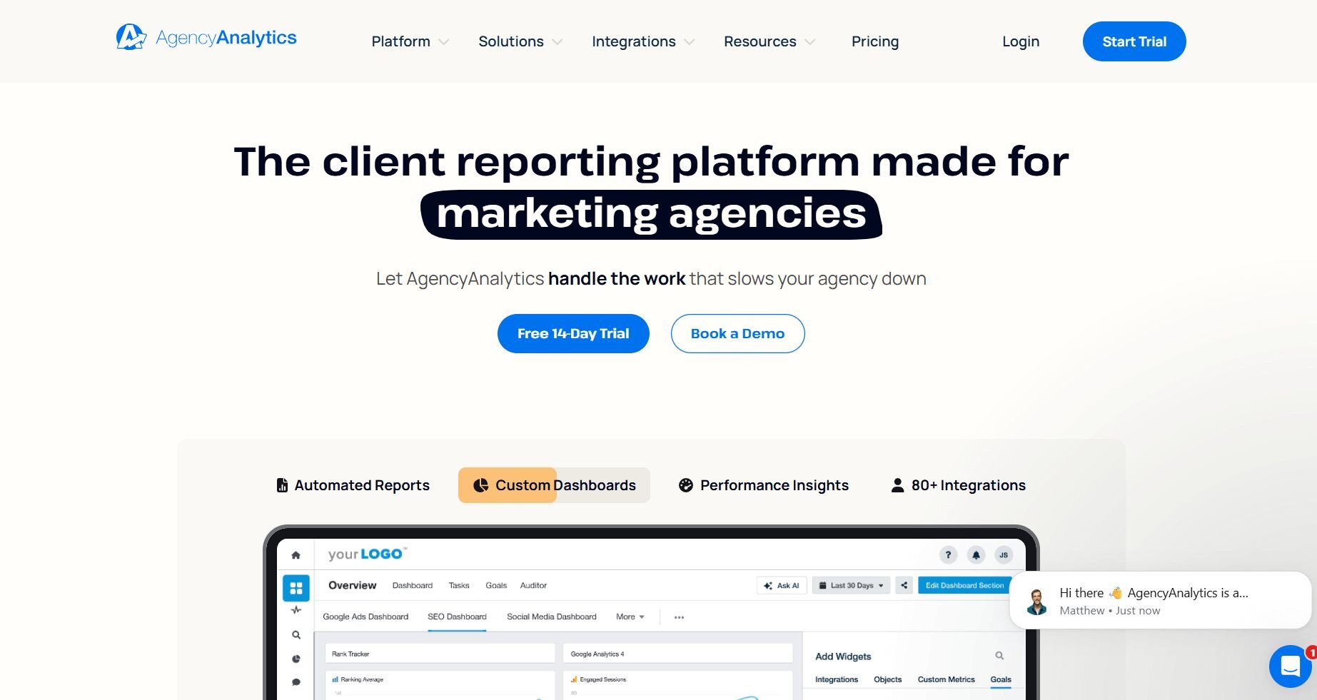 AgencyAnalytics if you run client reporting and need ready-made marketing dashboards.