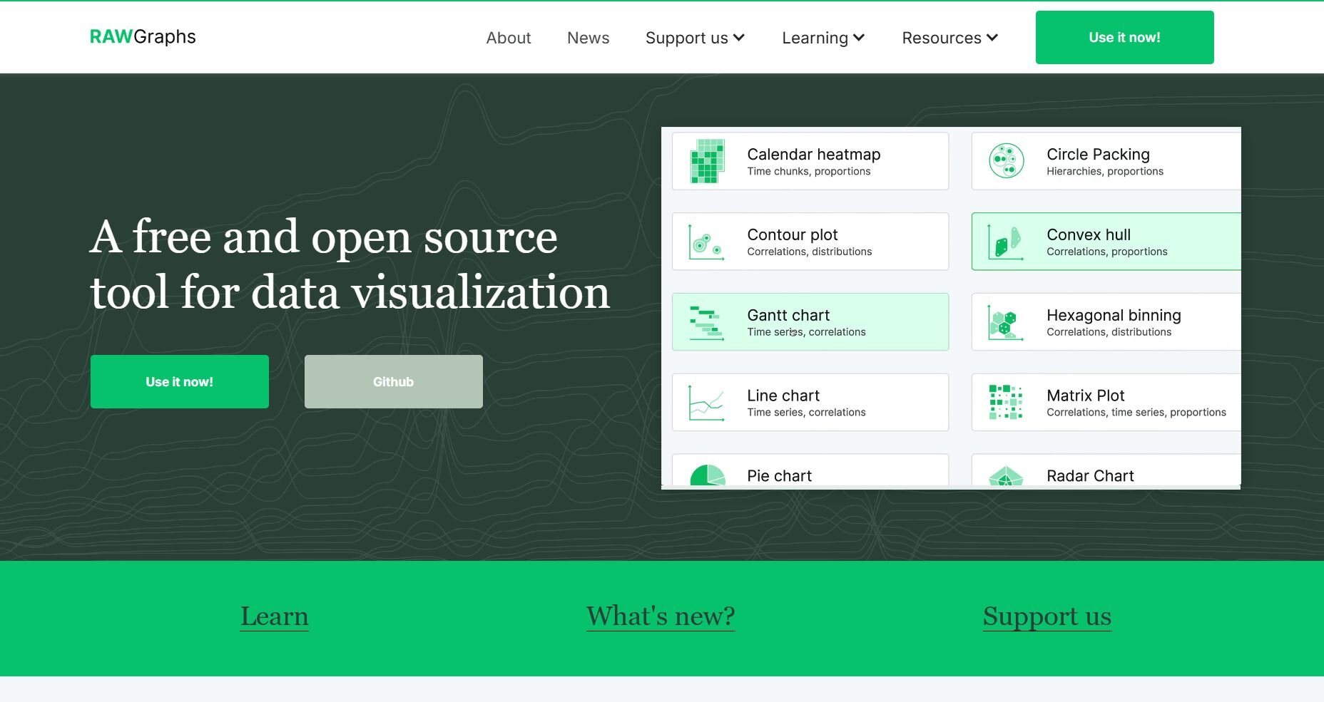 What it does: RAWGraphs builds custom charts from unique templates that aren’t common in standard tools. You upload data, select a chart type, and map fields to visual elements. The tool focuses on flexibility rather than automated reporting.