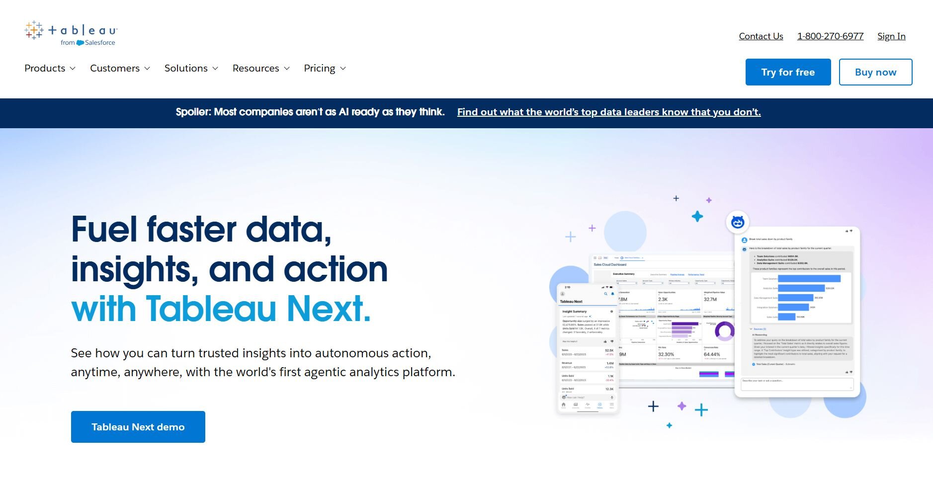 What it does: Tableau connects to multiple data sources and turns them into interactive dashboards. You can build charts, apply filters, and run comparisons through a drag interface built for analysis. The product supports large datasets and detailed drilldowns.