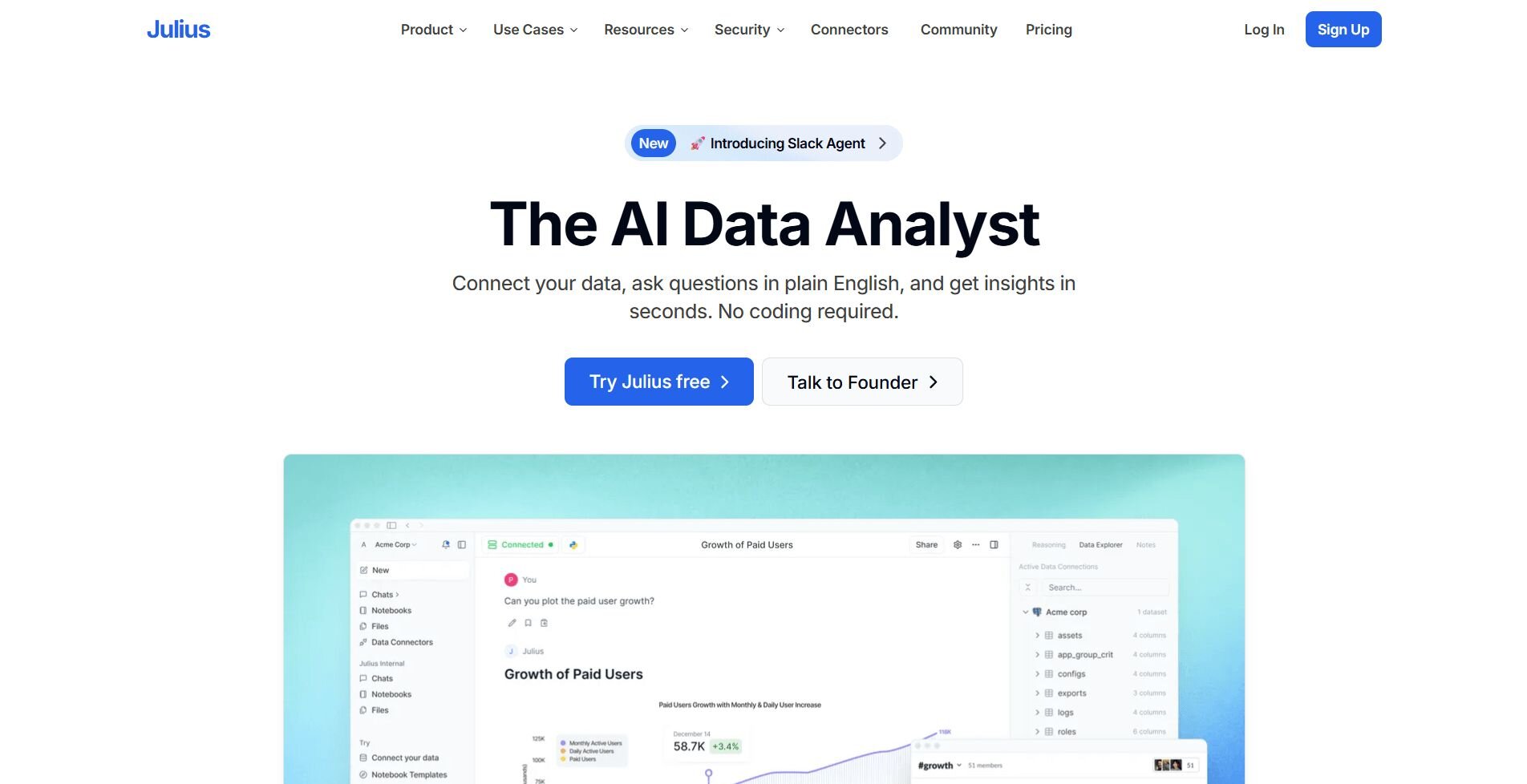 Julius: Best for natural language data analysis with connected databases