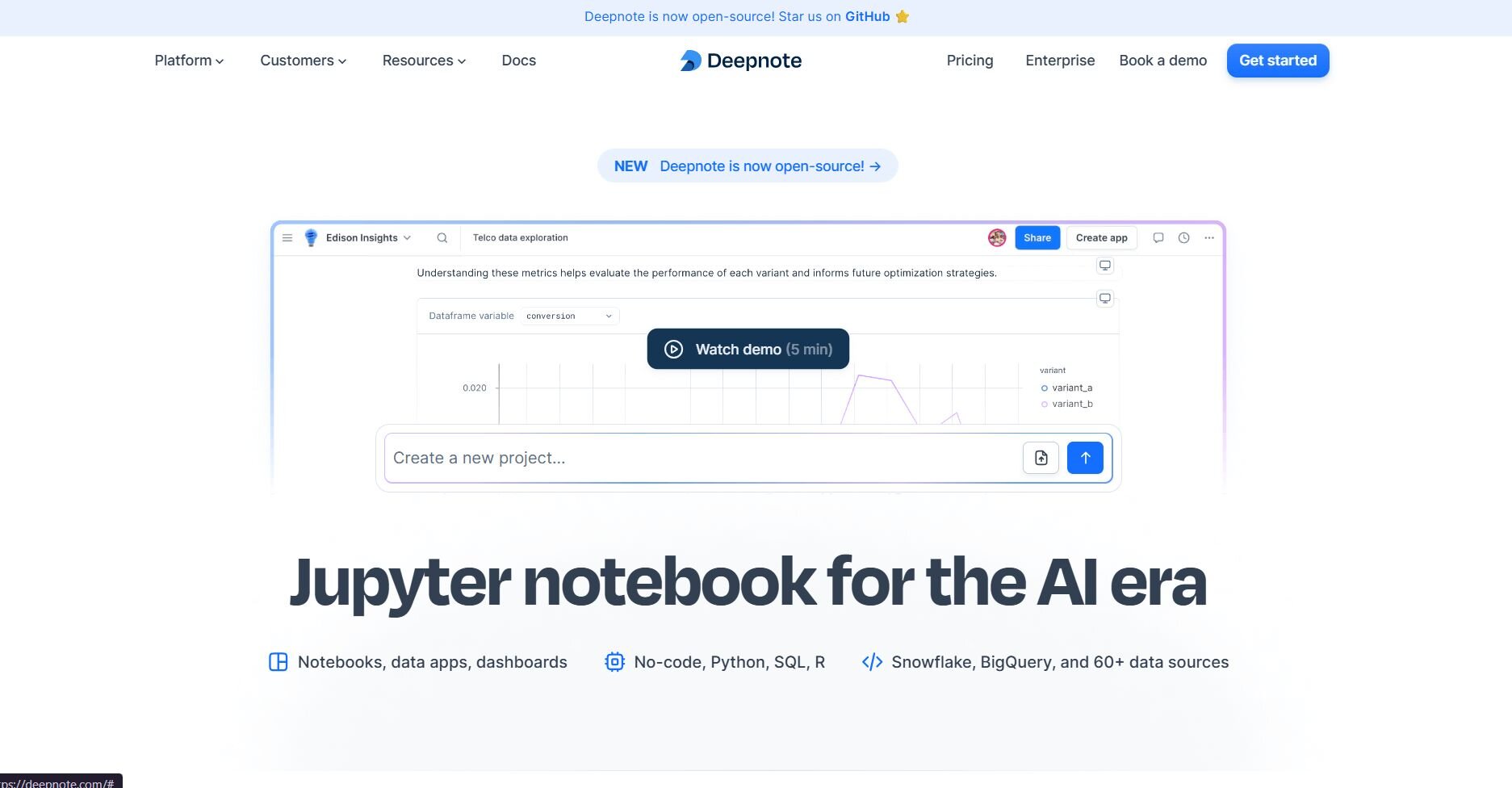 Technical teams building collaborative data workflows | Real-time collaboration on notebooks with SQL and Python support for reproducible analysis |